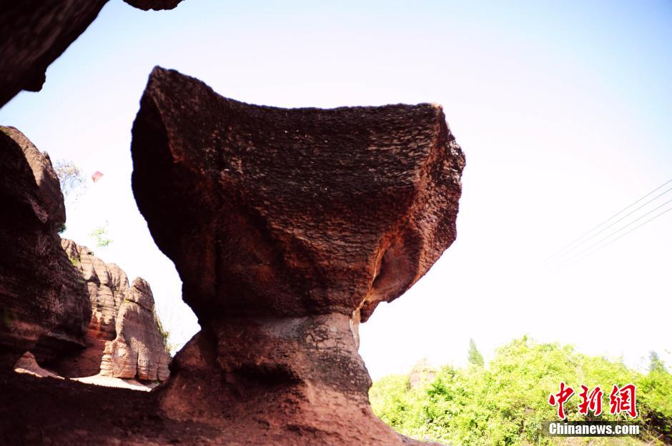 A large area of red rock forest is found in Baizhu village, 50 kilometers away from Youyang county, southwest China’s Chongqing city. Relevant authorities have taken measures to protect the forest. So far, nearly 66 hectares of red rock forest have been excavated, attracting many tourists to the site. (Chinanews/Cheng Bisheng)