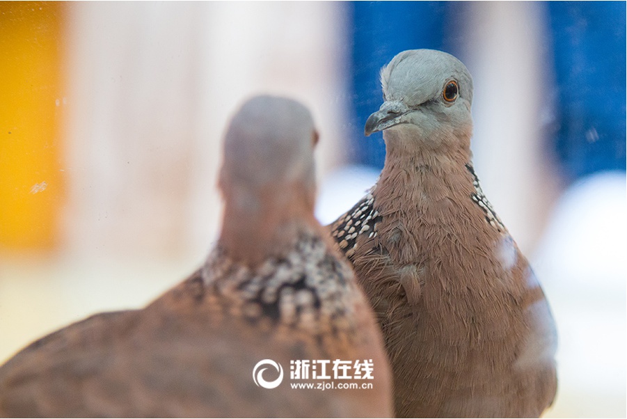 Huihui likes to look in the mirror. (Zhejiang Online/Ni Yanqiang)