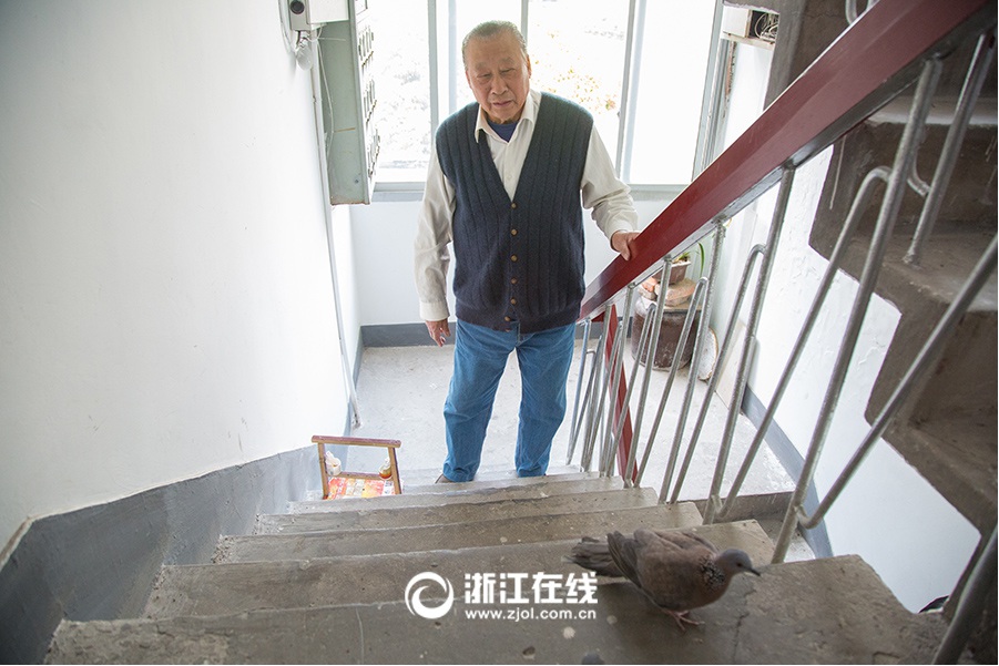 Every day, Huihui goes up stairs first, waiting for Shu to open the door. (Zhejiang Online/Ni Yanqiang)