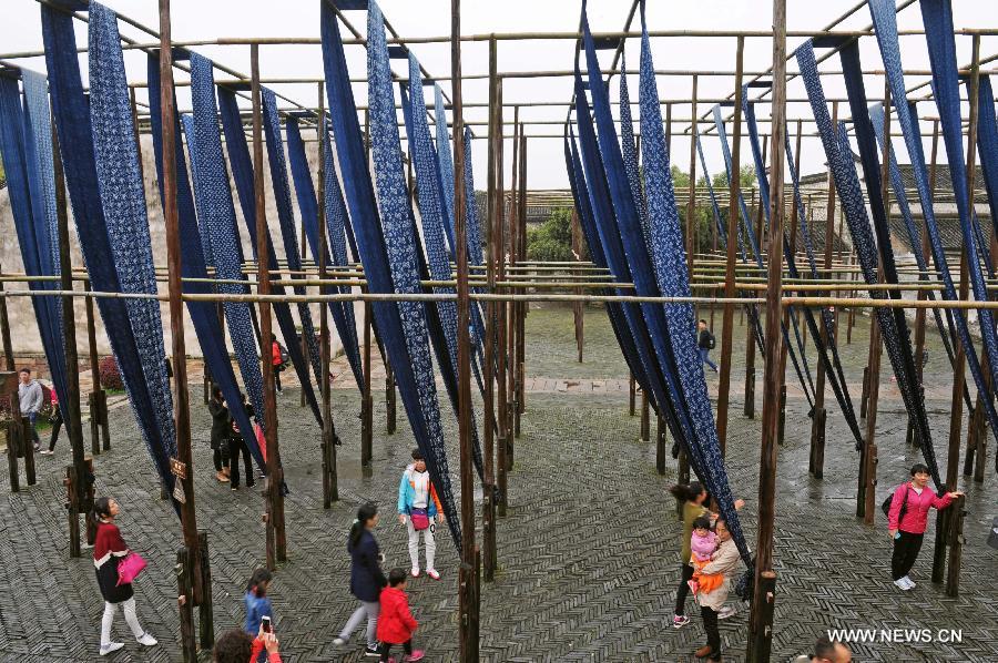 Tourists visit a memorial archway of Liu Family Temple in Nanxun Town of Huzhou City, east China's Zhejiang Province, April 19, 2015. A total of 13 ancient towns in east China's Zhejiang and Jiangsu provinces have recently joined hands to apply for the list of world heritage. The application work is expected to complete before March 2017. (Xinhua/Tan Jin)