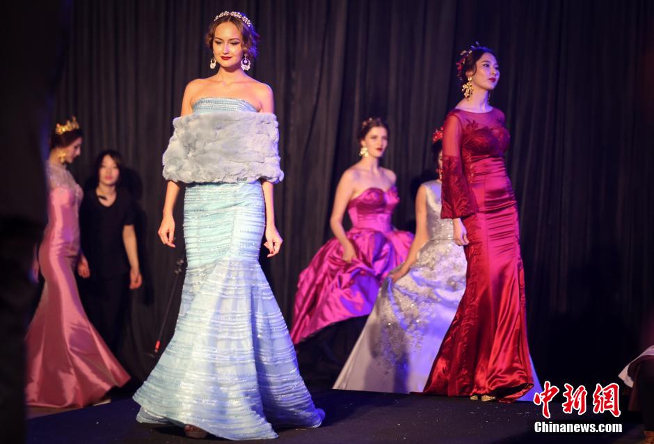 Models dressed in trendy wedding dresses perform a spectacular wedding show in a hotel in Nanjing. (Chinanews/Yang Bo)