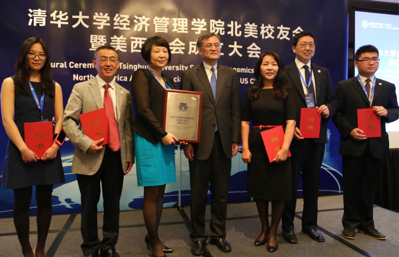 | Professor Qian Yingyi issues the letter of appointment to Western US Chapter at the inaugural ceremony. (People's Daily Online/Han Shasha) |