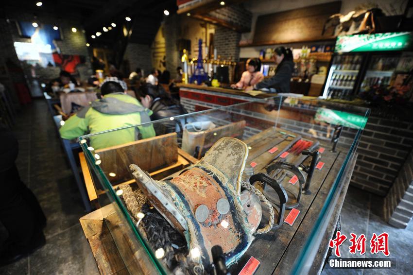 A museum-themed restaurant opens in Changchun, capital of northeast China's Jilin province, April 18, 2015. The restaurant exhibits clothes and handicrafts with features of northeast Chinese history. (CNS/Zhang Yao)