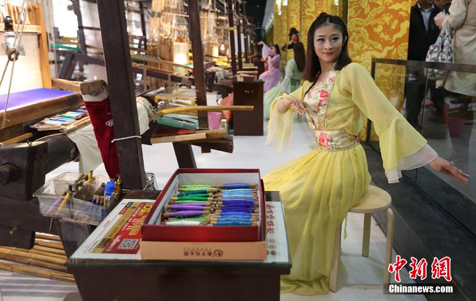 After a two-month renovation, Nanjing Brocade Museum reopens to the public on April 19, 2015. As an intangible cultural heritage of humanity, Nanjing brocade has a history of 1600 years and is one of the four famous brocades of China. The reopened museum puts much emphasis on introducing the production procedure of Nanjing brocade and displaying the choicest goods of China’s silk brocades. (Chinanews/Yang Bo)