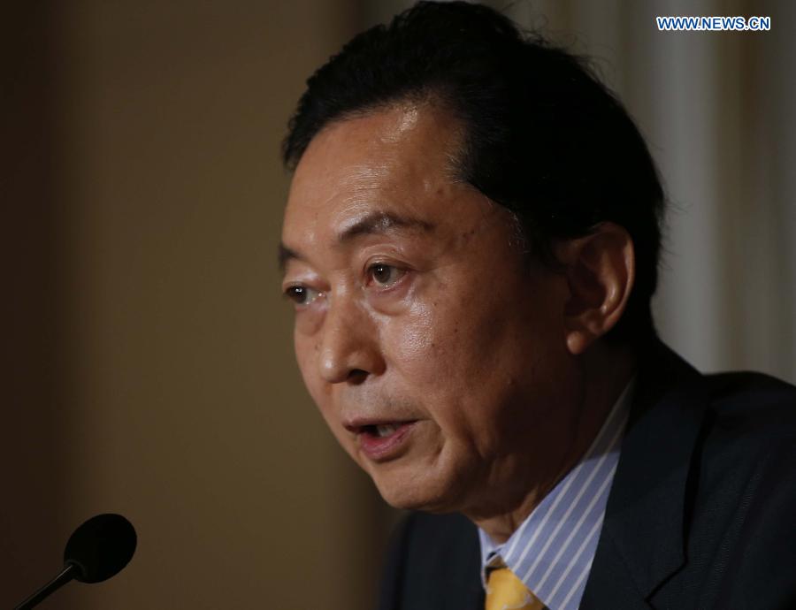 Former Japanese Prime Minister Yukio Hatoyama speaks during a press conference in Tokyo, Japan, April 22, 2015. Hatoyama called on Prime Minister Shinzo Abe to follow the Murayama Statement and to include the key words in his war anniversary statement, adding that he has "considerable anxieties " that Abe's statement may increase tensions among peoples of the Asian region. (Xinhua/Stringer)