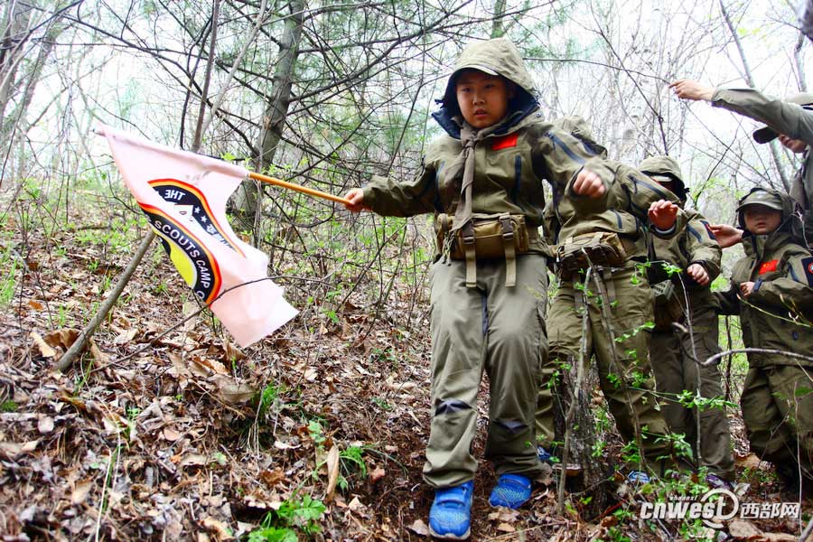 More than 20 primary school students learn outdoor skills including outdoor cooking and experience their lives in the wild in Yingpan Township, Shangluo, northwest China's Shaanxi Province on April 18, 2015. (Photo/cnwest.com)