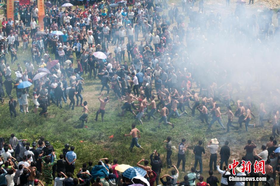 The third day of the third lunar month, a traditional festival of many ethnic minorities in China, falls on April 21 this year. A “firework festival” was held in Sanjiang Dong Autonomous County of south China’s Guangxi. Over 200 men from Guangxi, Guizhou and other regions took part in an interesting celebration activity “firework scramble”. The game has a history of over 200 years, which is also called the “oriental rugby”. (Chinanews/Huang Weiming)