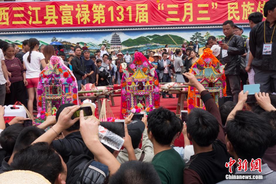 | The third day of the third lunar month, a traditional festival of many ethnic minorities in China, falls on April 21 this year. A “firework festival” was held in Sanjiang Dong Autonomous County of south China’s Guangxi. Over 200 men from Guangxi, Guizhou and other regions took part in an interesting celebration activity “firework scramble”. The game has a history of over 200 years, which is also called the “oriental rugby”. (Chinanews/Huang Weiming) |