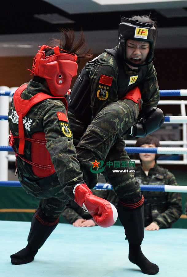 Female members are in fistfight training on March 23, 2015. (www.81.cn/Li Jing)