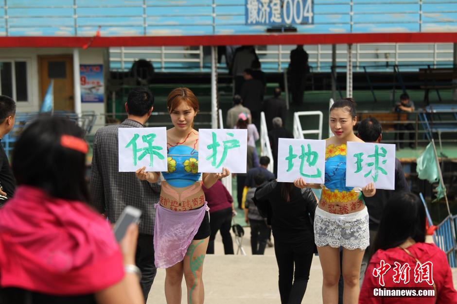 On the Earth Day on Wednesday, the beautiful university students put on body paintings to call on the people to protect the earth's resources in Jiyuan, central China's Henan province. They drew crowds and elicited positive responses.(Chinanews.com/Wang Zhongju)