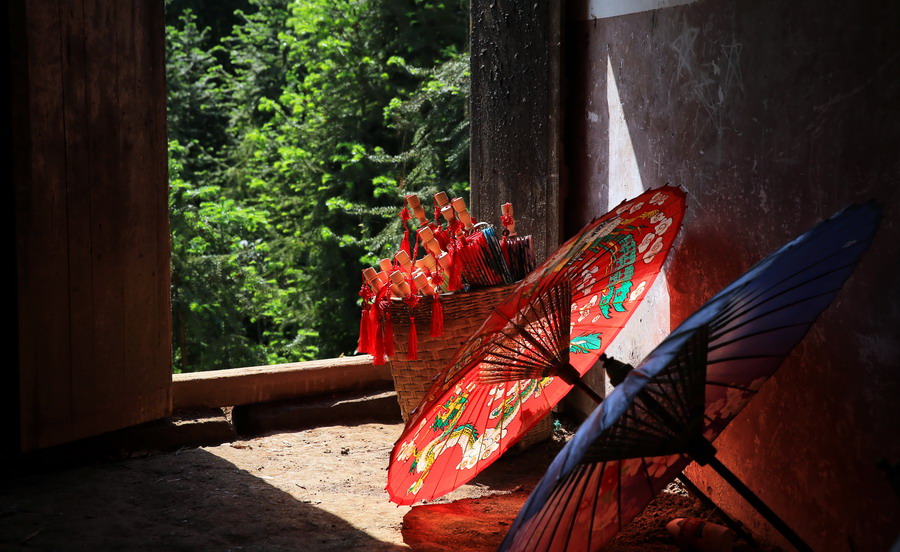 The exquisite and beautiful oiled paper umbrella. (Xinhua/Liu Xueyi)