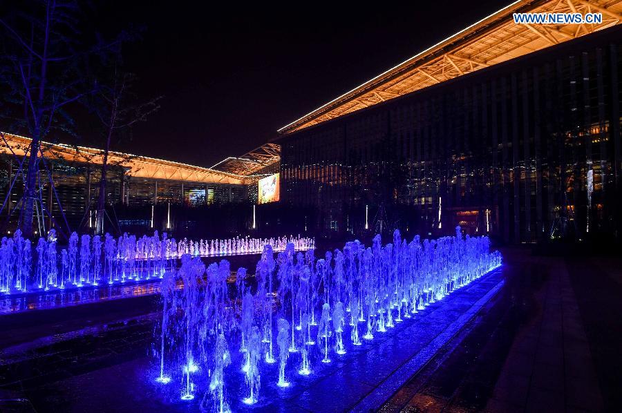 Photo taken on April 24, 2015 shows the night view of Suzhou, city of east China's Jiangsu Province and the host city of the 53rd Table Tennis World Championships. (Xinhua/Yang Lei)
