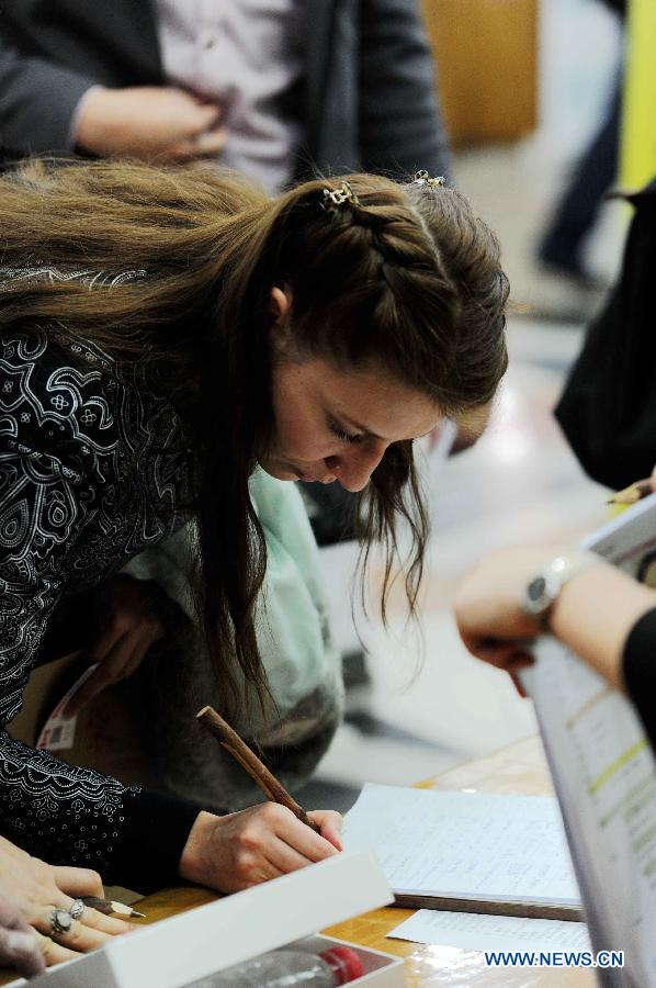 Foreign graduates talk with recruiters at a job fair especially held for foreign students in Heilongjiang University in Harbin, capital of northeast China's Heilongjiang Province, April 25, 2015. More than 200 foreign graduates from ten countries tried to find a job at the fair. (Xinhua/Wang Song)