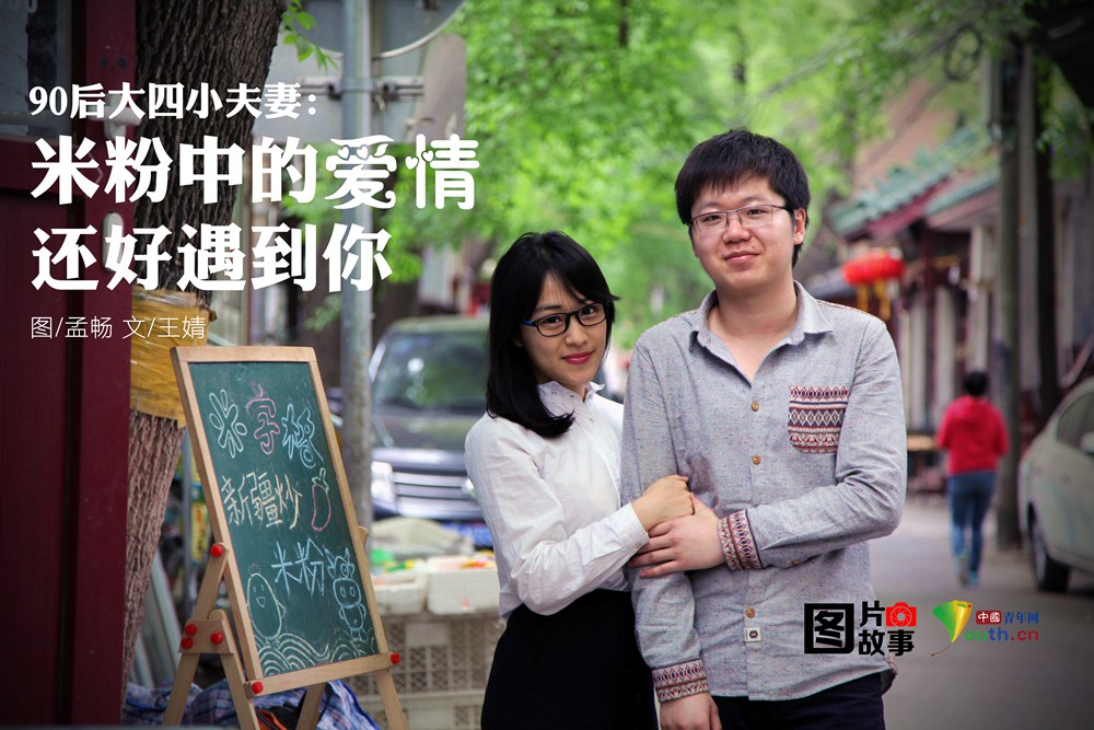 "Want anything on the side? Chicken or beef?" Jin Meijiao is expertly taking customers' orders. In a restaurant meansuring only 16 sq meters down an alley near the Beijing Yonghe Lama Temple, 22-year-old senior student of Beijing Institute of Technology Jin Meijiao, and 23-year-old senior student of Beijing Institute Of Graphic Communication Li Jianfeng are "guarding" their first baby business — a rice noodle restaurant.