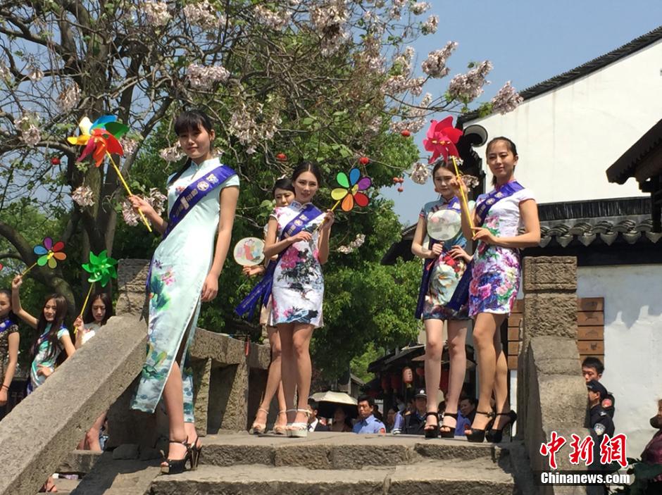 Yulia, Zhang Jinxiao and other supermodels appear in Zhouzhuang, east China's Jiangsu Province On April 23, 2015. Yulia is the winner of the World Super Model Contest Global Finals. (Chinanews.com/Huang Ying)