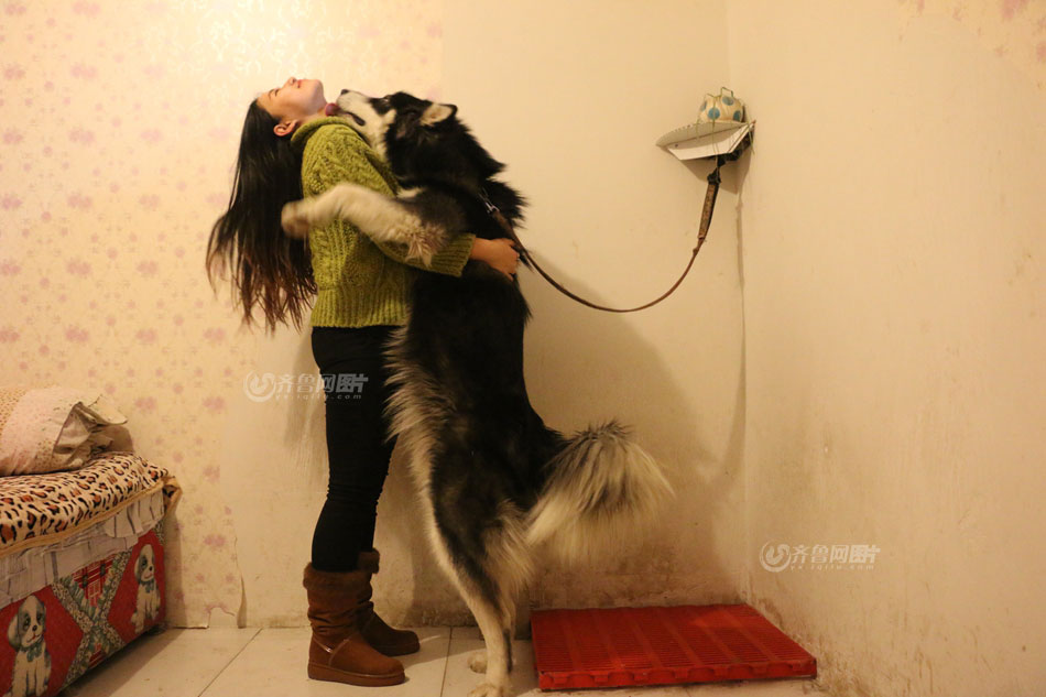 Li Nengneng will play with her dog for a while after work each day. She has been walking her dog and looking after it for more than a year. At 1.7 meters, the one-year-old dog is as tall as Li.(iqilu.com/Bai Shaoguang)