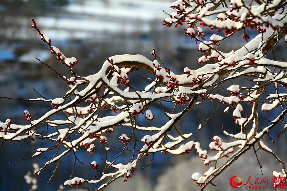Pengyang county is located in Guyuan, Ningxia Hui Autonomous Region. The climate in Pengyang is volatile in April. The county had seen peach blossoms, apricot blossoms and green willow leaves before the snowfall which covered the county overnight.(Photo/People.cn)