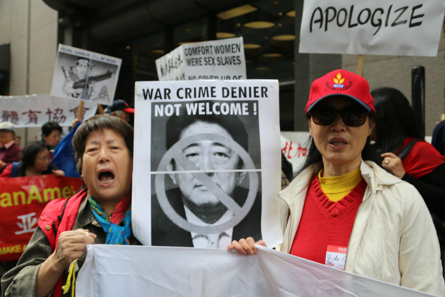 Hundreds of protesters in San Francisco call for apology from Japan's Abe (5)