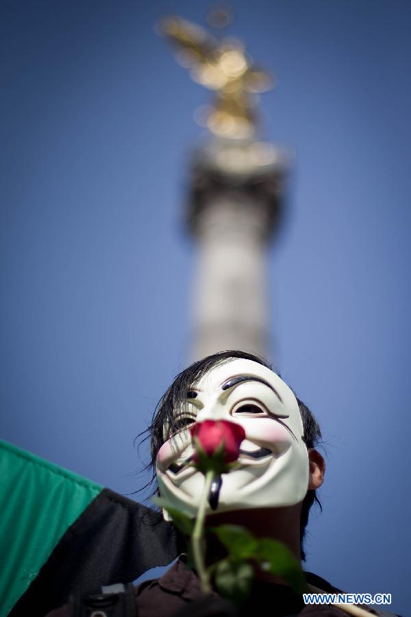 A resident holds a flower during a march in Mexico City, capital of Mexico, on May 1, 2015, the International Workers' Day. (Xinhua/Alejandro Ayala)