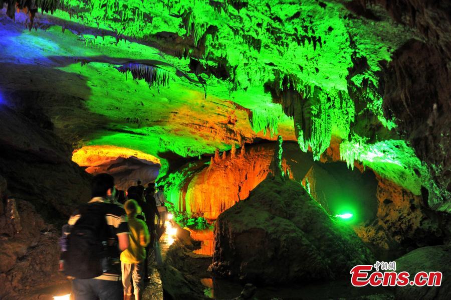 Tourists visit underground karst caves at a scenic spot in southwest China's Chongqing municipality, May 4, 2015. The underground caves and rivers attracted many tourists during the 3-day May Day holiday. (Photo: China News Service/Zhong Xin)