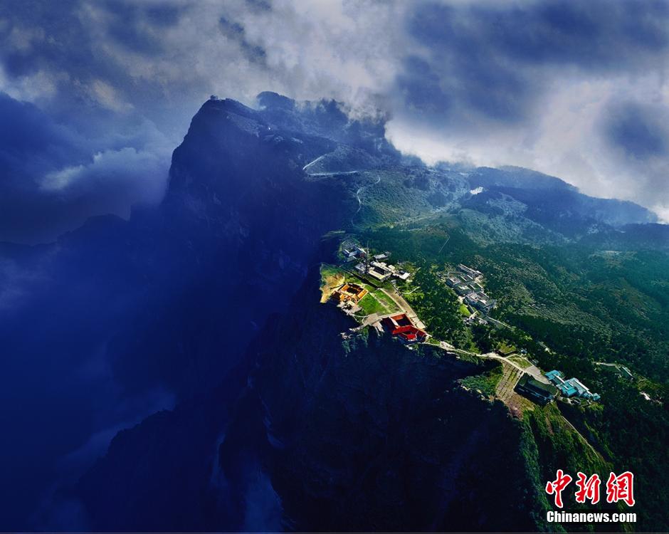 It is said that Tian Jieyan, a famous photographer, has taken aerial photos of Mount Emei since March 15, 1995. His photos titled Golden Summit of Mountain Emei was awarded the golden prize for the fine art photos at the 20th Chinese National Photographic Art Exhibition. His photo album titled A Beautiful View of Mountain Emei from the Sky will be published this year. (Chinanews.com/Tian Jieyan)