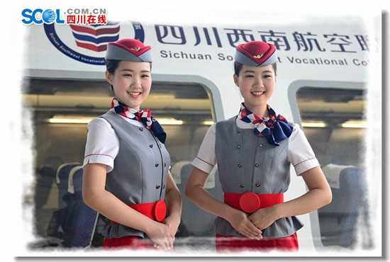 Two pairs of twin sisters are trained to be cabin attendants at the Sichuan Southwest College of Civil Aviation. Yan Huihui and Yan Cuicui are twin sisters; so are Yang Zhuojun and Yang Zhuolin. They have been recruited as cabin attendants by China Southern Airliners. (SCOL.com.cn/Yang De)