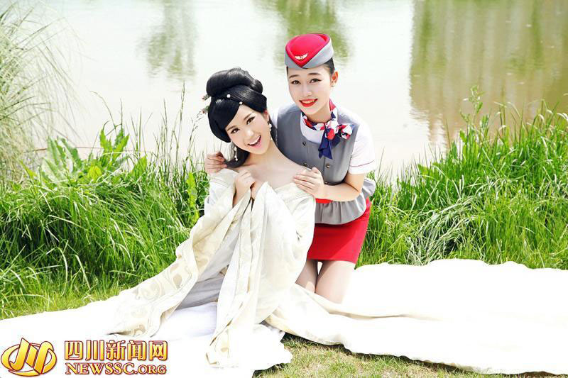 A set of photos of beautiful university girls have become an Internet hit in recent days. These girls from the same dormitory studied hard while being trained to be cabin attendants at the Sichuan Southwest College of Civil Aviation. They have all been recruited as cabin attendants by China Southern Airliners. (Photo/newssc.org)
