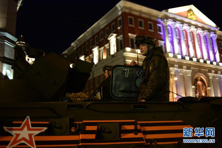 Russian soldiers rehearse on Red Square, Moscow on May 4 for the upcoming 2015 Moscow Victory Day Parade. The parade will take place on May 9, 2015 to commemorate the 70th anniversary of the capitulation of Nazi Germany in 1945. (Xinhua/Dai Tianfang)