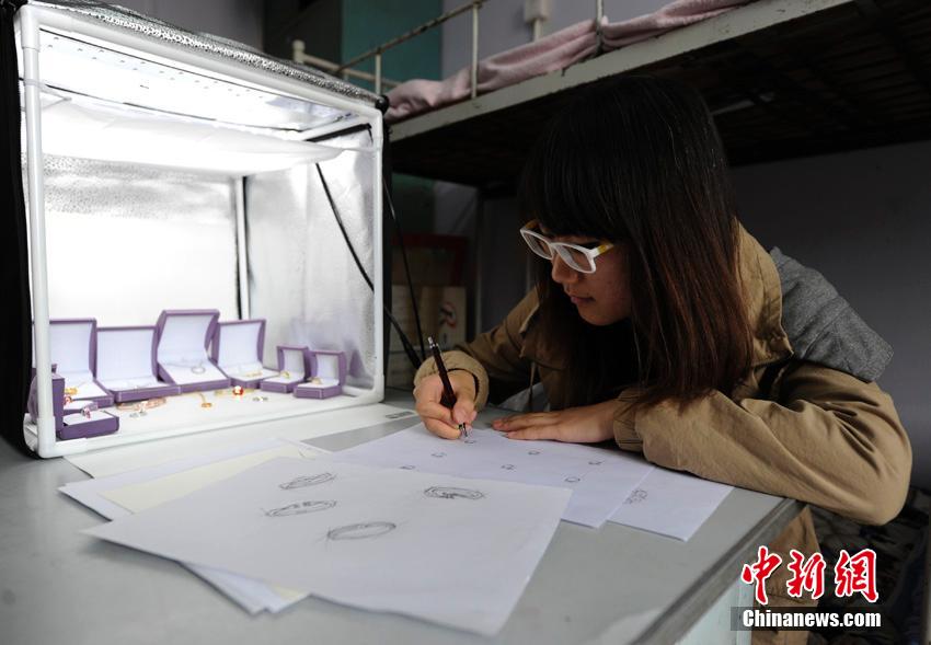 Some college students in Changchun have established their own special jewelry company. Elements of colleges and universities are added to these jewelries — "graduation ring", "graduation bracelet" etc., which have become very popular among the students. (Chinanews/Zhang Yao)