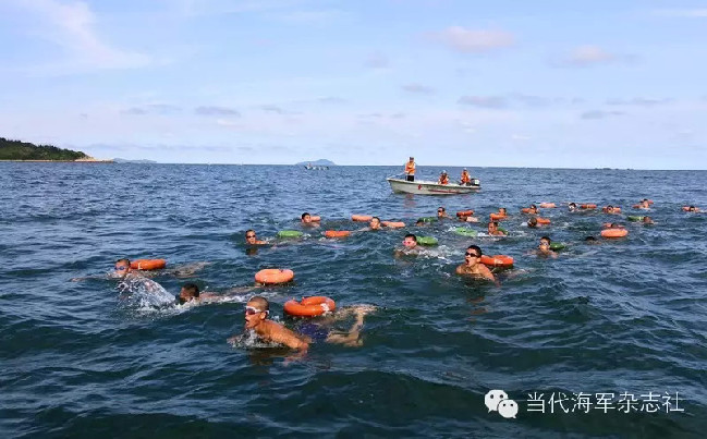 Swimming in battle gear and 10,000-meter swimming are necessary skills of a marine. (Photo source: WeChat of Modern Navy Magazine)