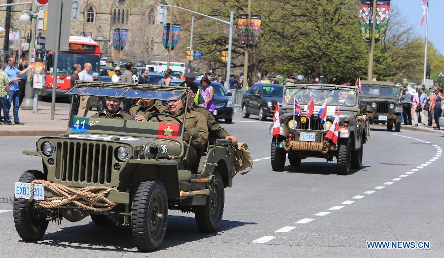 People attend a commemorative event to mark the 70th anniversary of World War II victory in Europe in downtown Ottawa, Canada, May 8, 2015. (Xinhua/Li Baodong)