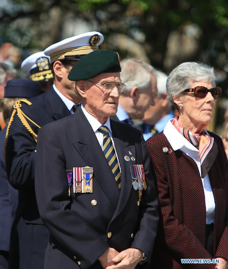 People attend a commemorative event to mark the 70th anniversary of World War II victory in Europe in downtown Ottawa, Canada, May 8, 2015. (Xinhua/Li Baodong)