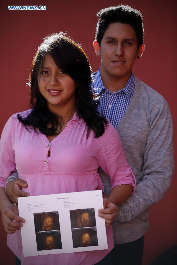 Mateo (R) and his wife Andrea show the ultrasonography of their first child, before his birth in Quito, capital of Ecuador, on May 9, 2015. In Ecuador, the Mother's Day is celebrated on the second Sunday of May. (Xinhua/Santiago Armas)