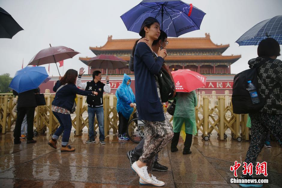 Medium to heavy rain hit Beijing on Sunday, also the Mother's Day, and the temperature plunged to the lowest in 21 years, with the highest temperate being only 11 degrees Celsius. It is the coldest day in the same period since 1994. (CNS Photo)