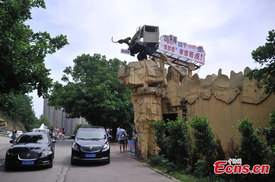 A structure depicting a car accident has been built at the entrance of the Foreigner Street theme park in Southwest China’s Chongqing municipality to warn against bad driving habits. The structure has slogans that mean “a car accident is more dangerous than a tiger and drivers would do better to have some self-respect and show less road rage”. The story of a male driver beating a female driver badly after she abruptly switched lanes has made national headlines recently, while police say many drivers easily lose their temper. (Photo: China News Service/Chen Chao)