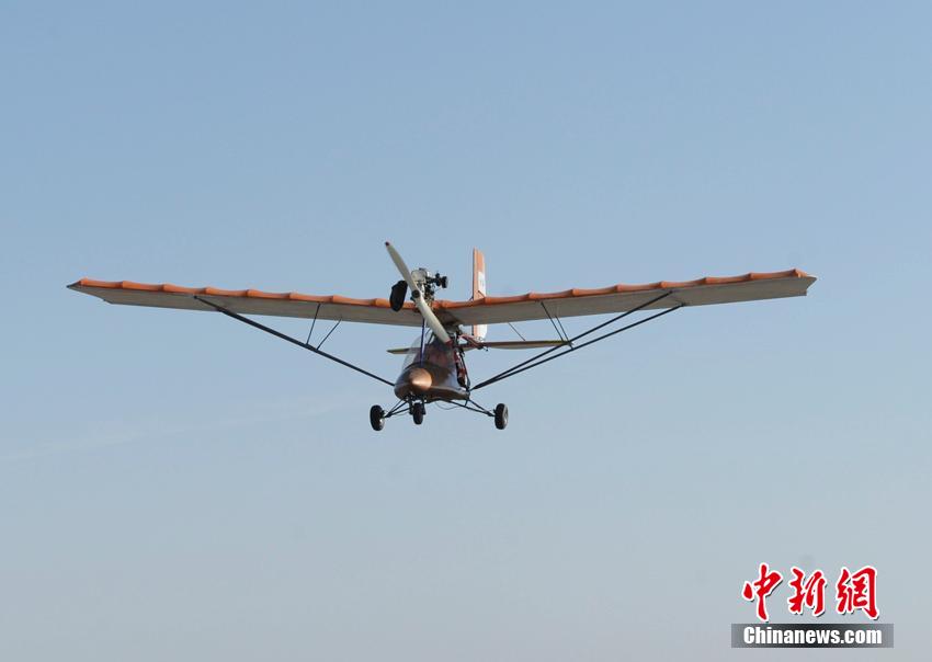 45-year-old Yang Shijun successfully flies his self-made light plane to the height of 200 meters in Changchun, northeast China’s Jilin province on May 10, 2015. His plane had made two trail flights previously. After the flight in May 10, the plane had completed 2.5 hours flight time and 10 taking-offs and landings. According to Yang, he and his friends are making three two-seater planes now, so as to enjoy more fun of flying. (Chinanews/Zhang Yao)