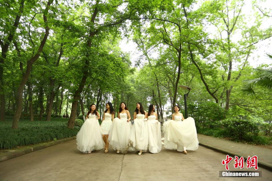 Graduates of Anhui University wear different kinds of costumes to take creative graduation photos on May 10. As the graduation season comes, graduates begin to take creative and stylish graduation photos to memorize their college life. (Chinanews/Han Suyuan)
