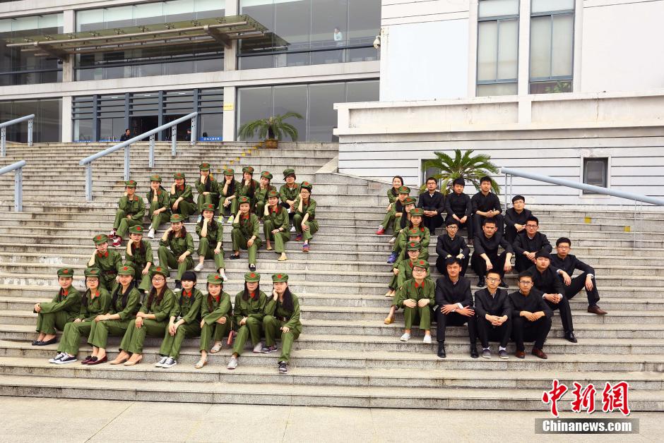 Graduates of Anhui University wear different kinds of costumes to take creative graduation photos on May 10. As the graduation season comes, graduates begin to take creative and stylish graduation photos to memorize their college life. (Chinanews/Han Suyuan)