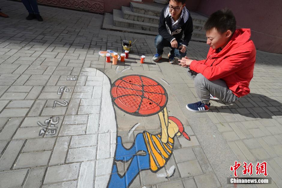 On the campus of Huhhot University for Nationalities, students drew cartoon figures like Baymax, Doraemon, and Garfield on manhole covers and stone pillars, which attracted a lot of attention.