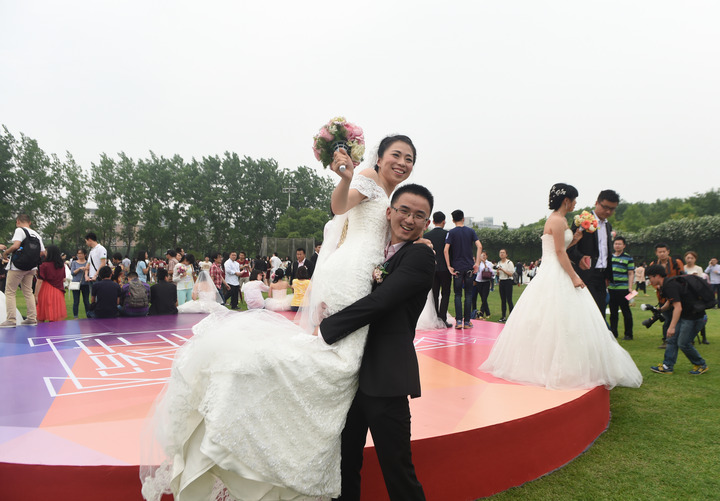 A group wedding for 360 couples is held in Zhejiang University, east China's Zhejiang province, May 10, 2015. Last Sunday was also the 118th founding anniversary of Zhejiang University. Family members, teachers and students witnessed the happiness of the 360 couples who have graduated from the university. (Photo/zjol.com.cn)