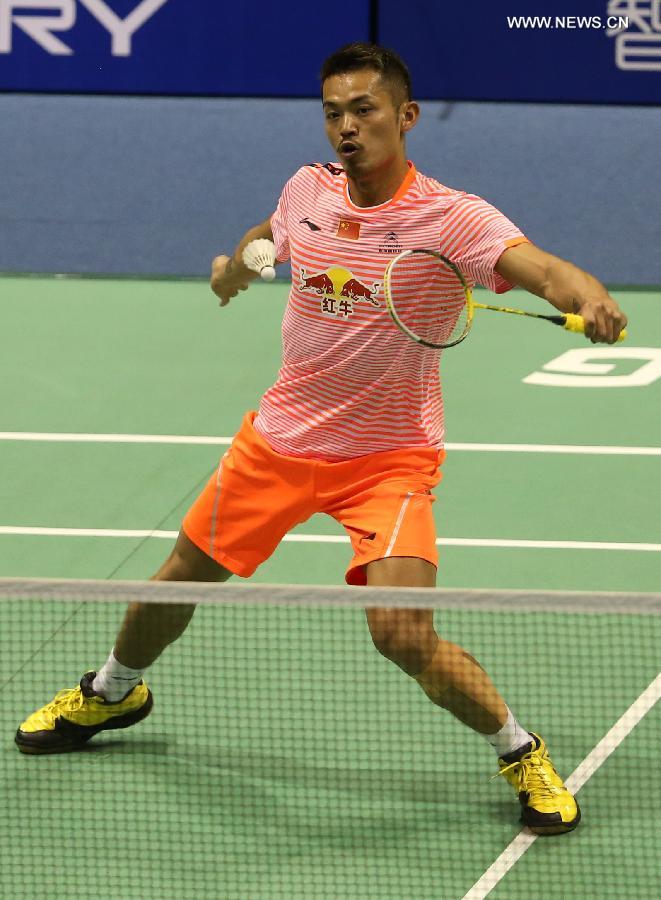 China's Lin Dan plays against Marc Zwiebler during the quarterfinal between China and Germany at 2015 Sudirman Cup BWF World Mixed Team Championships in Dongguan, south China's Guangdong Province, May 14, 2015. (Xinhua/Meng Yongmin)