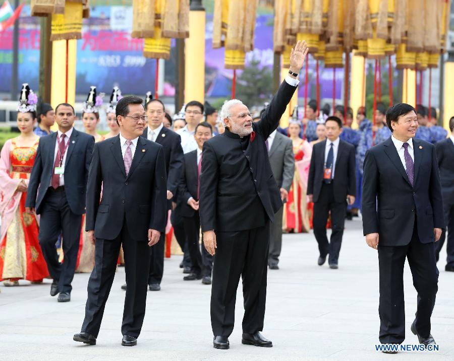 Traditional welcoming ceremony held for Modi in Xi'an (8)