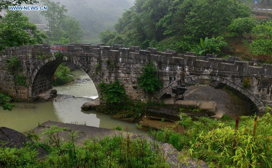 Photo taken on May 17, 2015 shows a stream in Yangmei ancient village of Laifeng County, central China's Hubei Province. The ancient village, with a history of hundreds of years, was named after its rich production of waxberries. There are 34 waxberry trees aged over 300 years, and 108 others aged over 100 years. The village has now developed into a scenic spot for traditional customs and folk culture, attracting tourists all around the nation. (Xinhua/Song Wen)