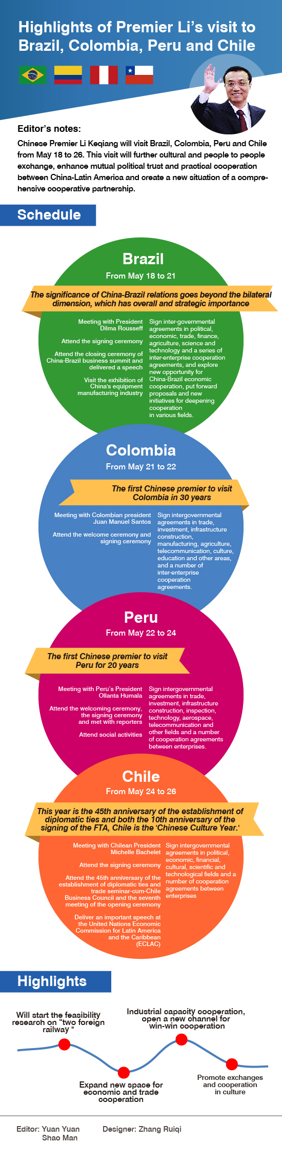 | Highlights of Premier Li’s visit to Brazil, Colombia, Peru and Chile |