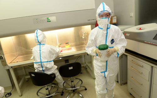 Researchers work on Ebola reagent kit. (Photo/People's Daily Online)