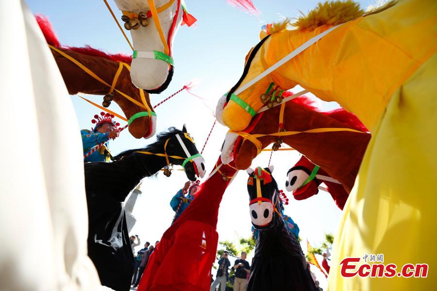 A temple fair opens on Miaofeng Mountain in Beijing, May 18, 2015. The temple fair, which has a history of more than 400 years, features Beijing’s folk customs and includes performances, food donations, and prayer. The temple fair will run until June 1. The mountain, in west Beijing's Mentougou District, is one of the most popular tourist attractions in the areas surrounding Beijing. (Photo: China News Service/Fu Tian)