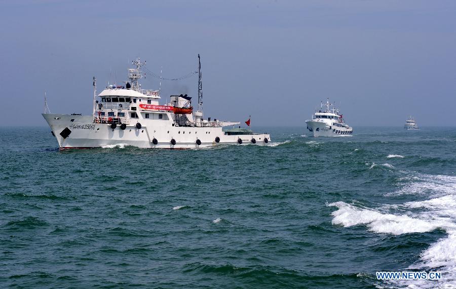 A law enforcement vessel patrols on the sea in southeast China's Fujian Province May 15, 2015. The Fujian maritime law enforcement department has taken measures to crack down on illegal fishing in the three-month fishing suspension in the Fujian sea areas starting on May 1. (Xinhua/Zhang Guojun)