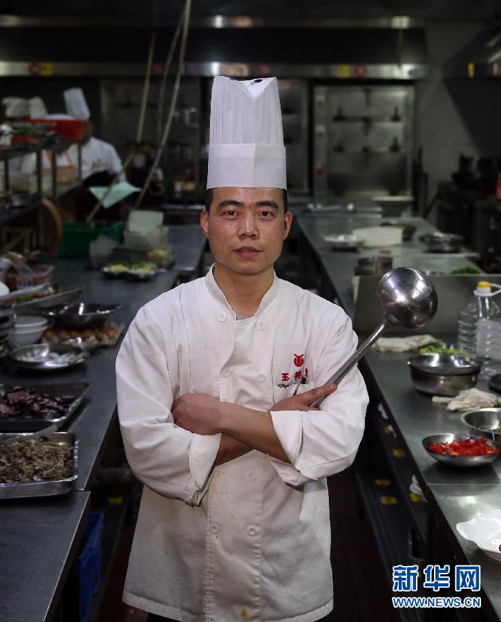 Wen Mao, a chef at a restaurant in Changsha, Feb. 18, 2015. (Xinhuanet/Li Ga)