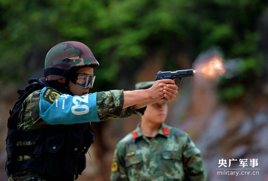 About 200 sharpshooters from different units of the armed police force in the city attend a shooting contest in southwest China’s Chongqing on May 12 to May 15, 2015. The contestants fulfilled shooting tasks in a series of scenarios, displaying their excellent combat ability. (Photo source: cnr.cn)