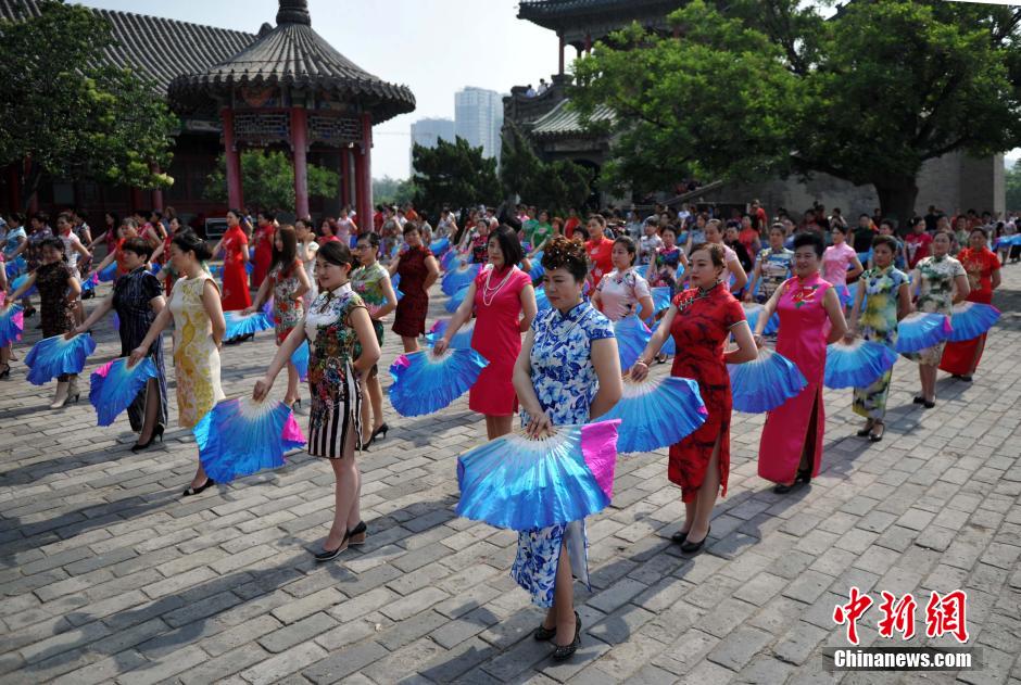 | 1,100 women stage a Cheongsam show in Handan, north China's Hebei Province, May 16, 2015. (CNS/Zhai Yujia) |